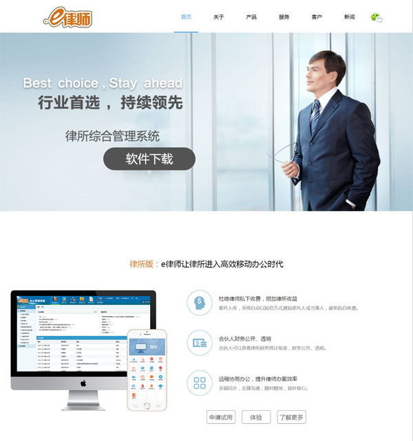 2016年8月3日凌晨e律師app通過蘋果系統審核上線!律所信息化建設乃大勢所趨,提高律師辦案效率和質量,建立客戶和律師辦案信息無縫銜接,律所管理實時覆蓋……歷時三年研發,e律師是適合國內90%中小律所的信息化管理系統。