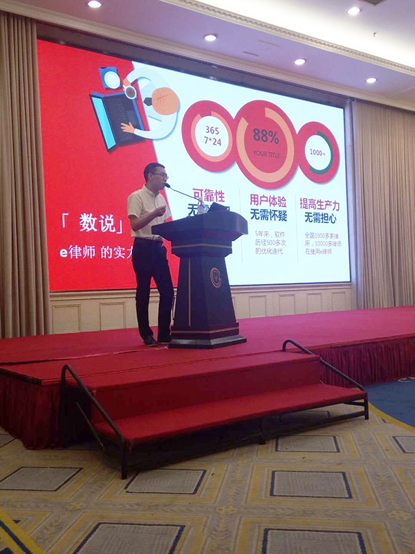 緊接著由浙江律聯信息科技有限公司董事長:程素華先生就上述話題,為在場嘉賓闡述了如何通過互聯網科技來助力法律服務,作《e律師管理系統如何提升律所管理》的主題分享。